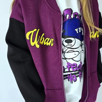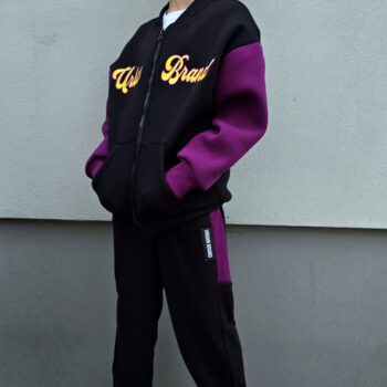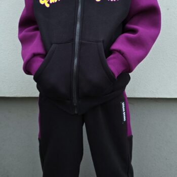 BLUZA CZARNO – FIOLETOWA OCIEPLANA Z HAFTEM