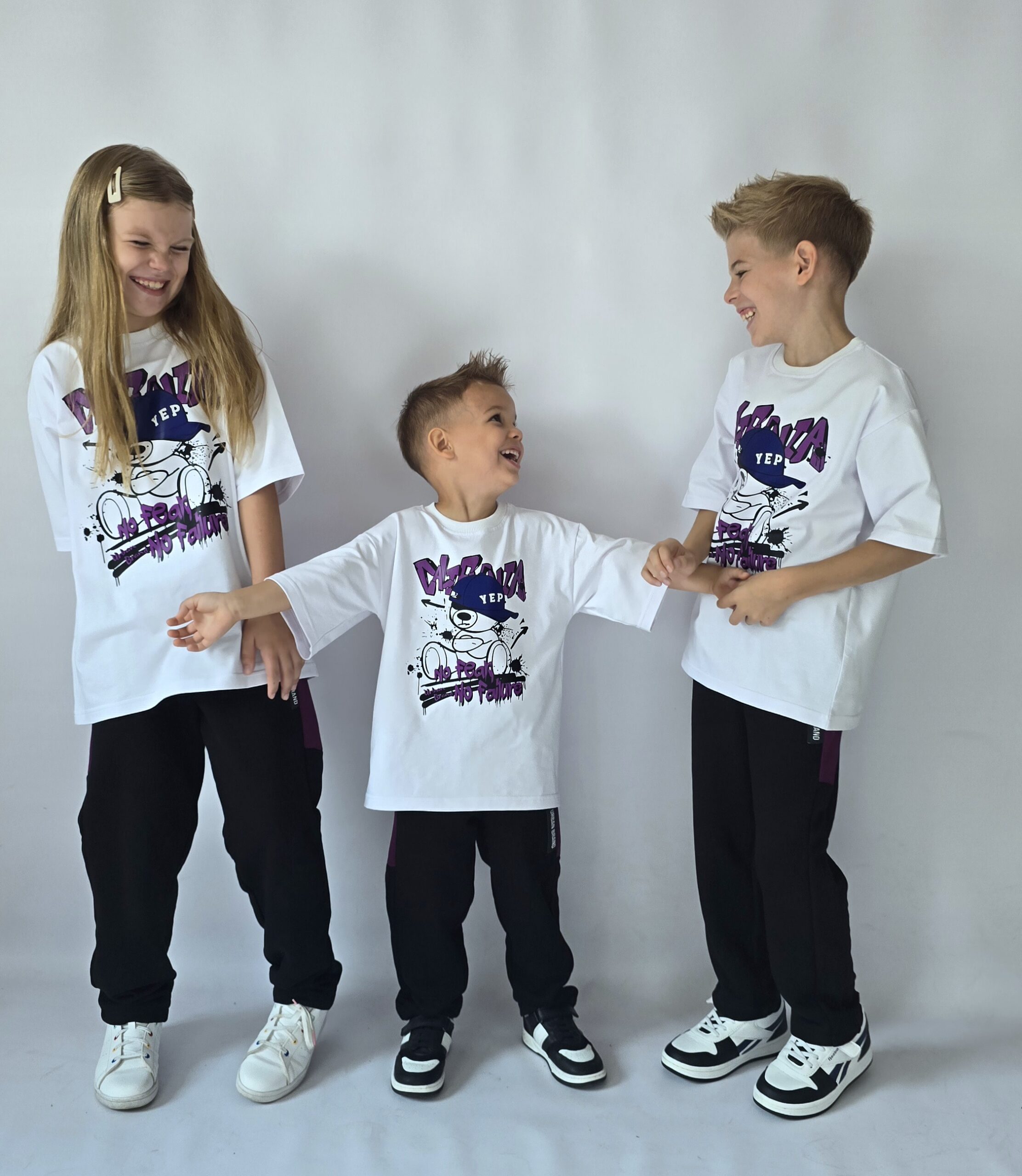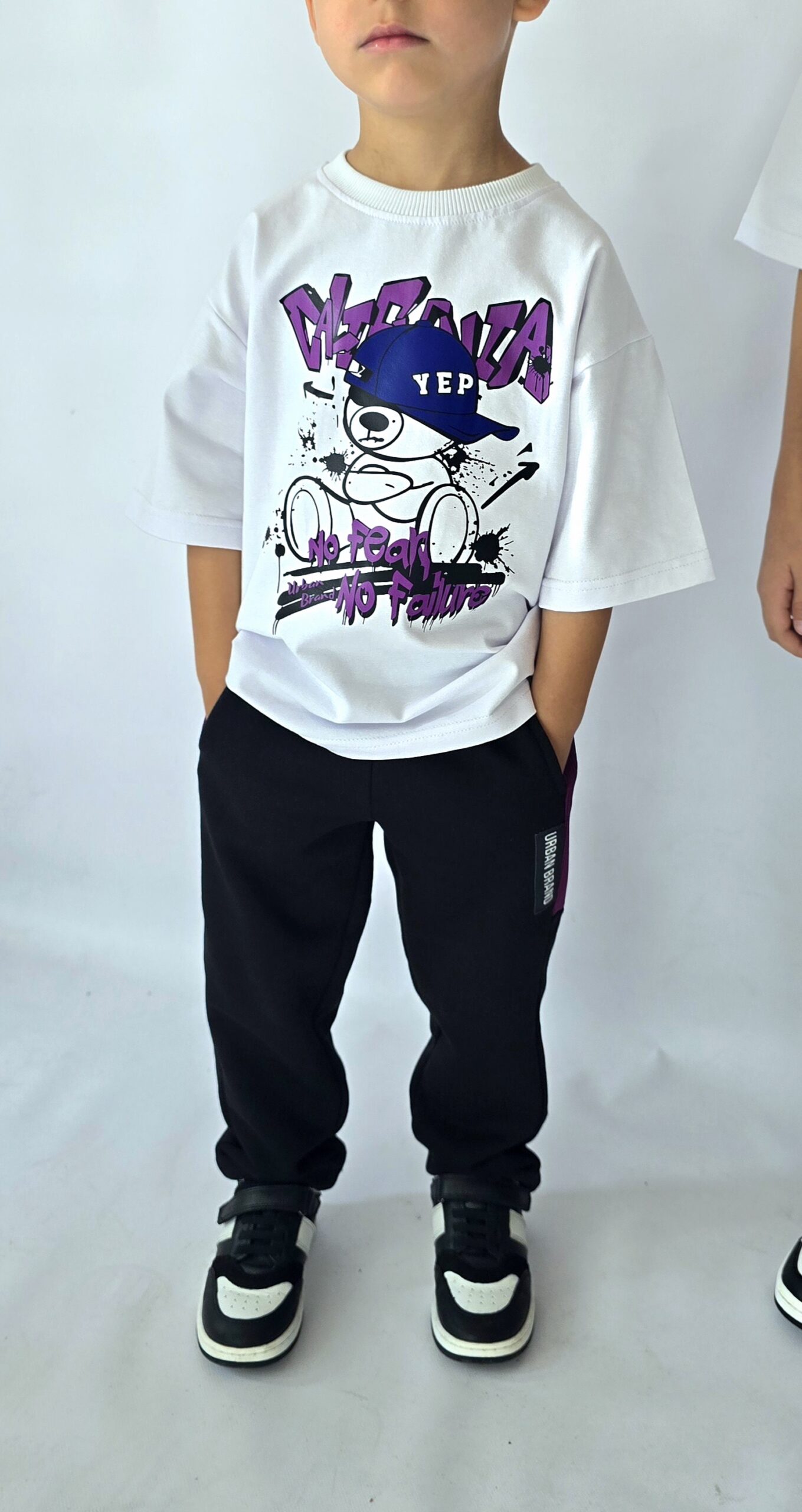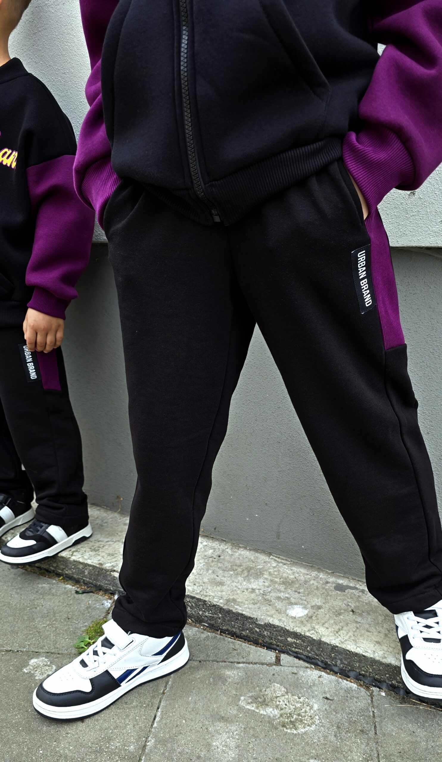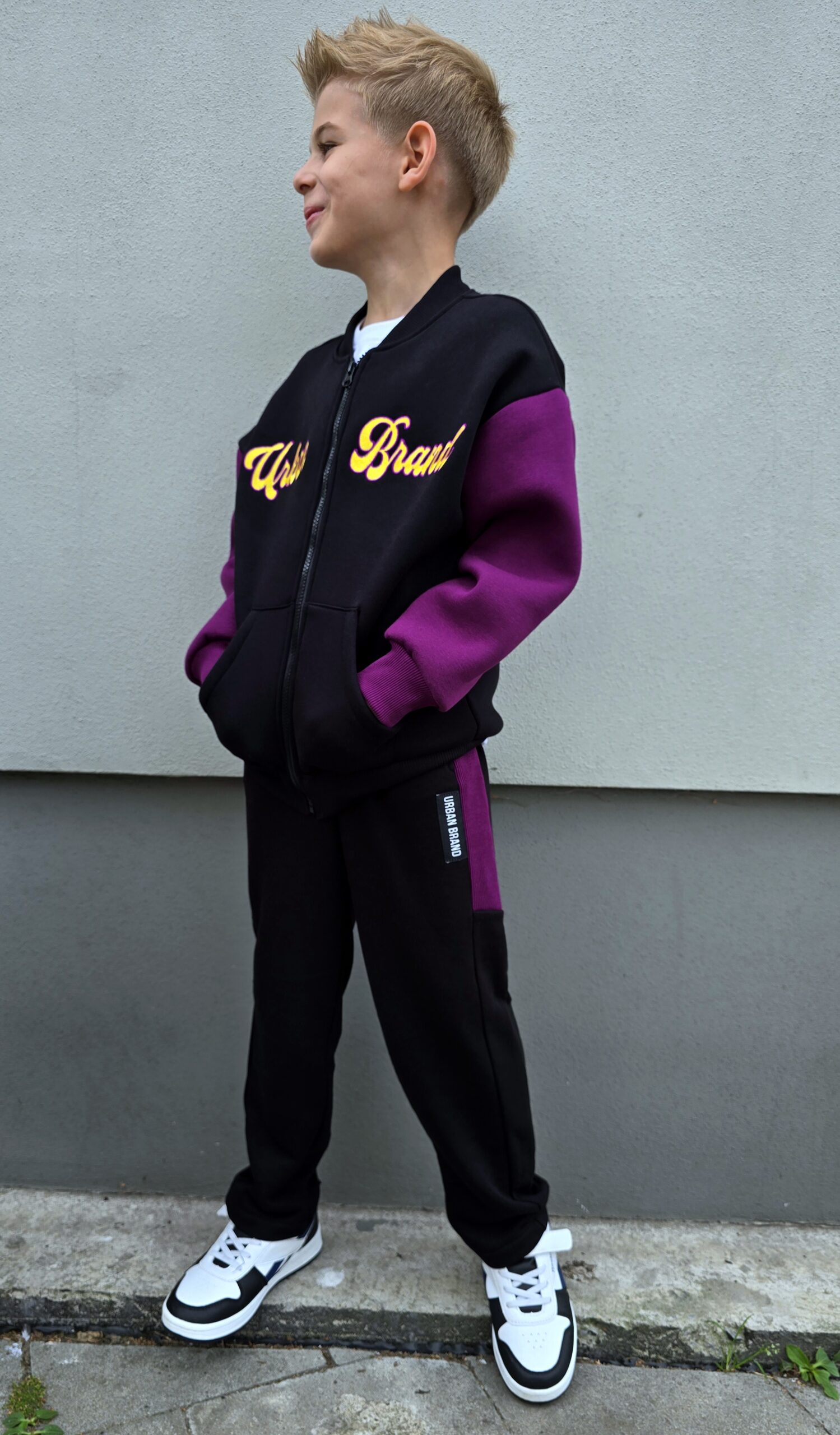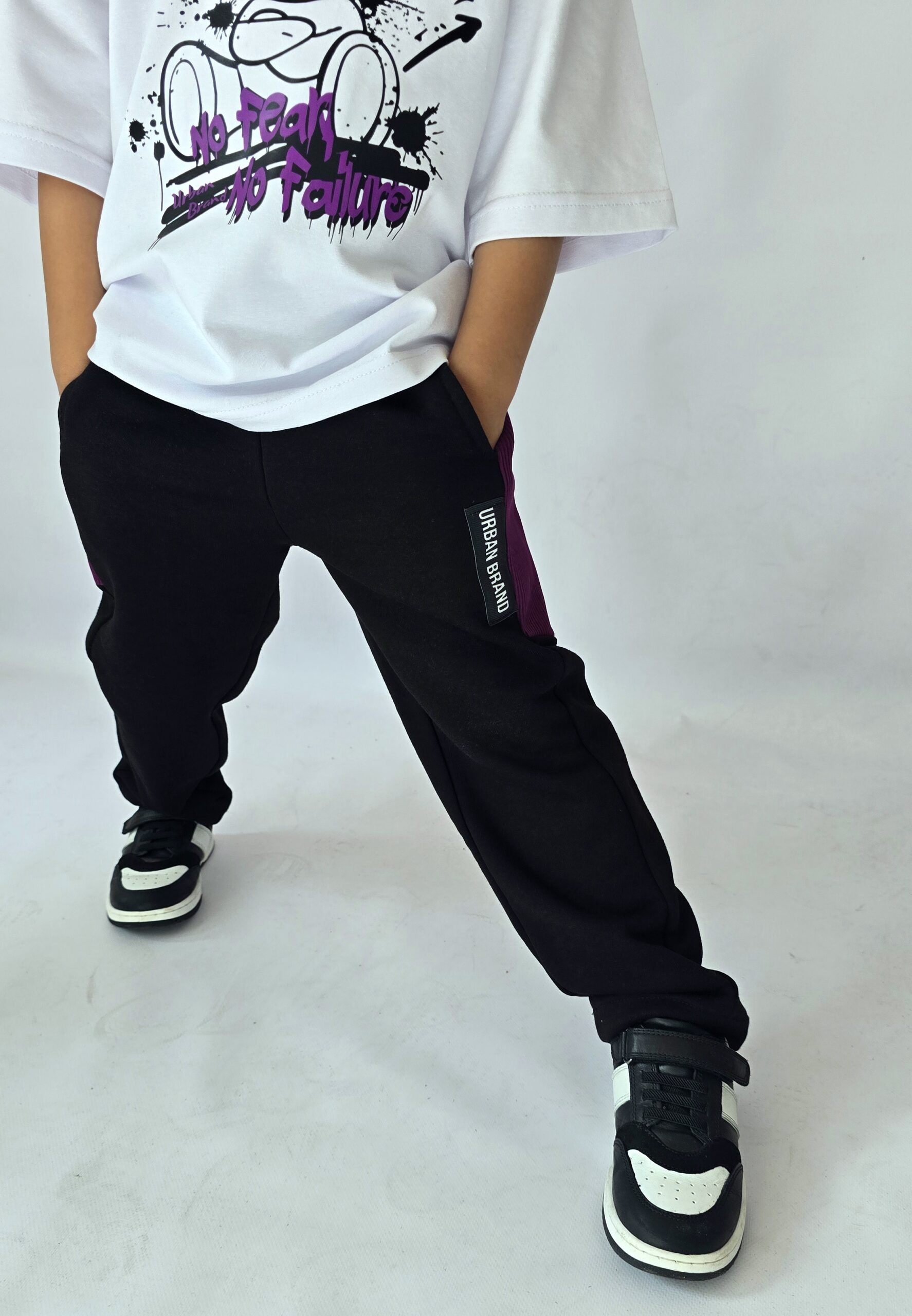 Spodnie dresowe w rozmiarach 104/110 do 152/158, idealne dla aktywnych dzieci. Wykonane z miękkiego i elastycznego materiału, zapewniają komfort i swobodę ruchów. Czarno-fioletowy design z modnymi detalami nadaje im nowoczesny wygląd. Dodatkowe kieszenie są praktyczne, a elastyczny pas gwarantuje idealne dopasowanie. Świetny wybór na codzienne zabawy oraz sportowe stylizacje!